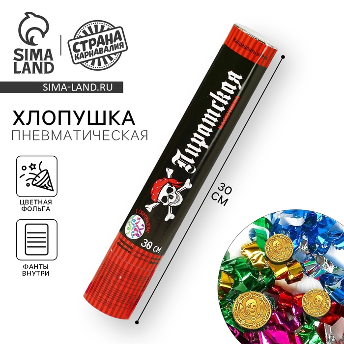 Хлопушка пневматическая «Пиратская», фанты, серпантин, фольга, 30 см