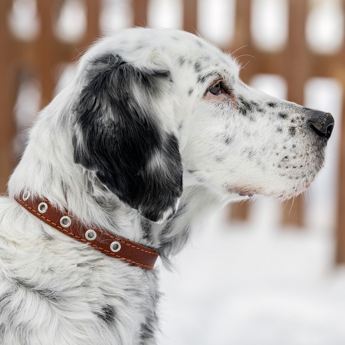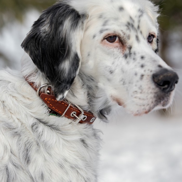 Ошейник кожаный двухслойный, 46 х 2 см, ОШ 25-35 см, коричневый