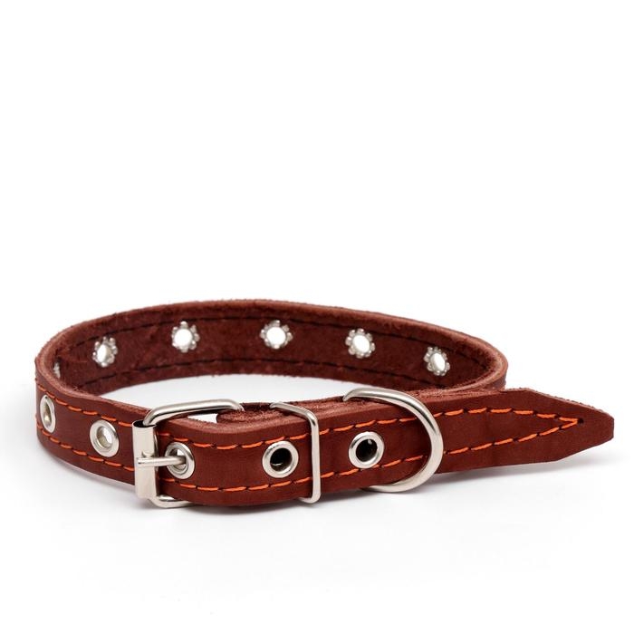 Ошейник кожаный с тиснением на синтепоне, 46 х 2 см, ОШ 25-35 см, коричневый
