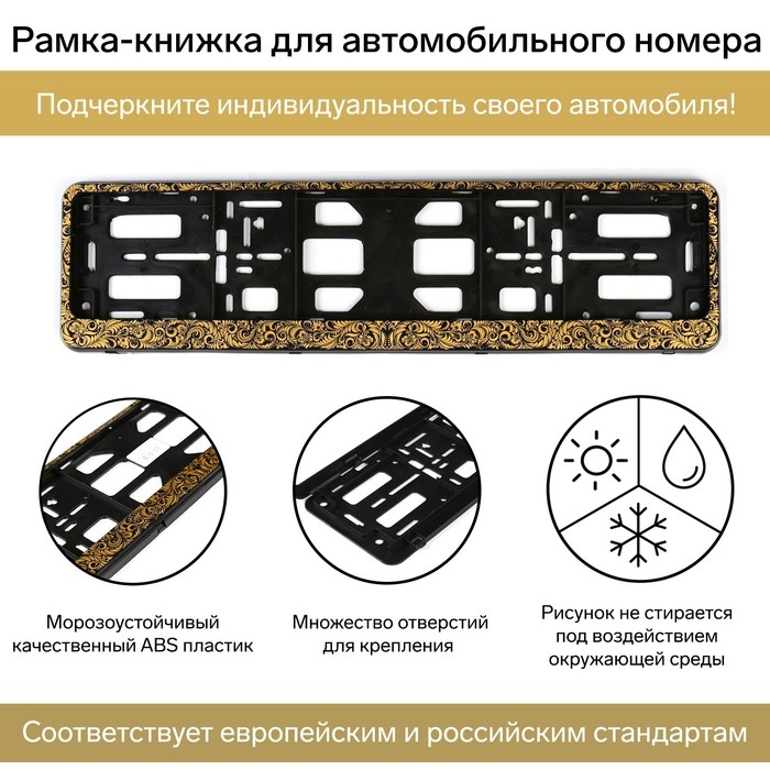Рамка для автомобильного номера, книжка, хохлома