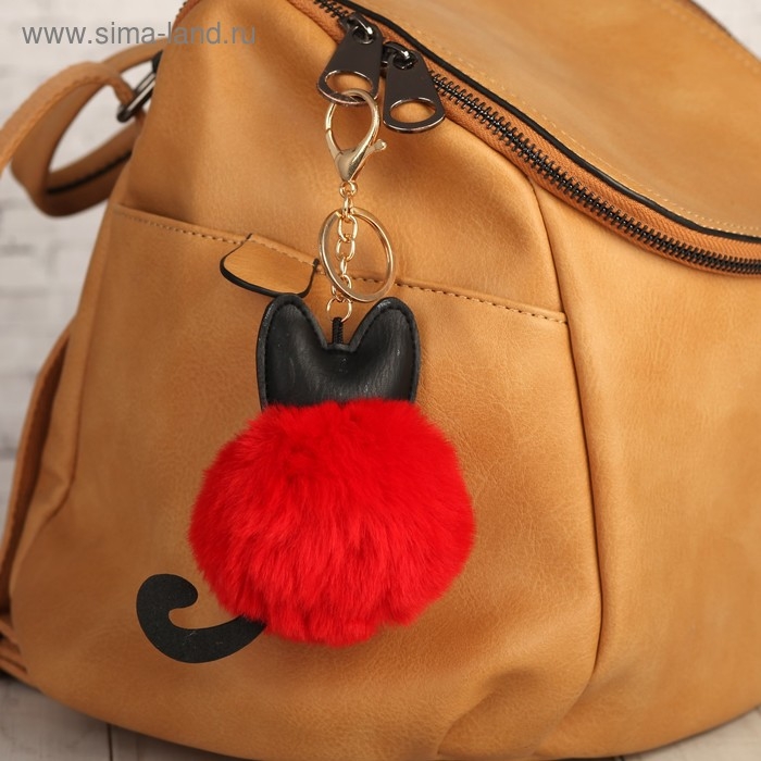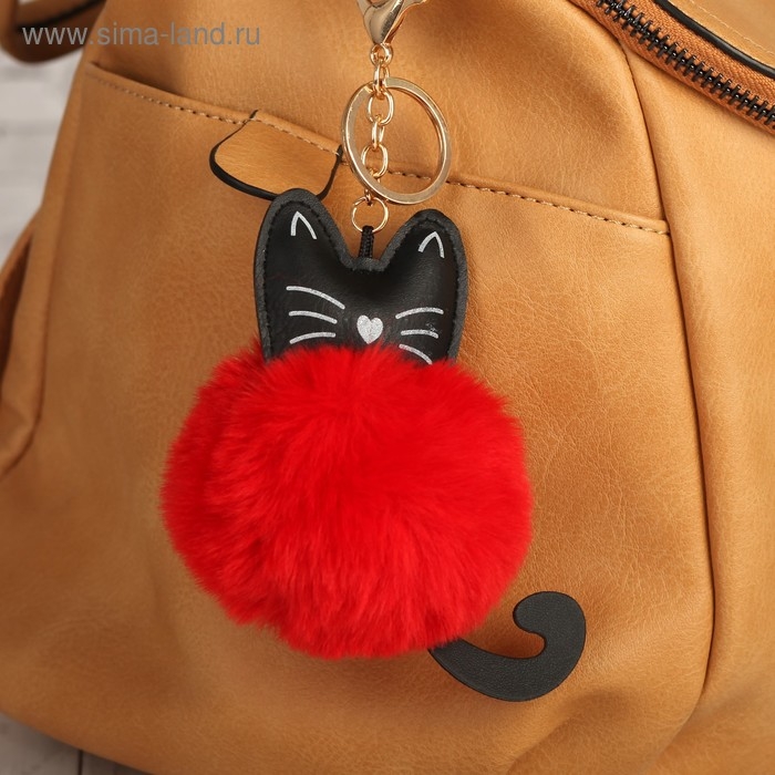 Пушистик на кольце "Котик с красным пузиком" 12,5х8х8 см