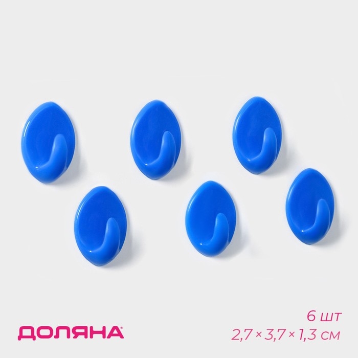 Крючки самоклеящиеся Доляна «Овал», 6 шт, цвет МИКС