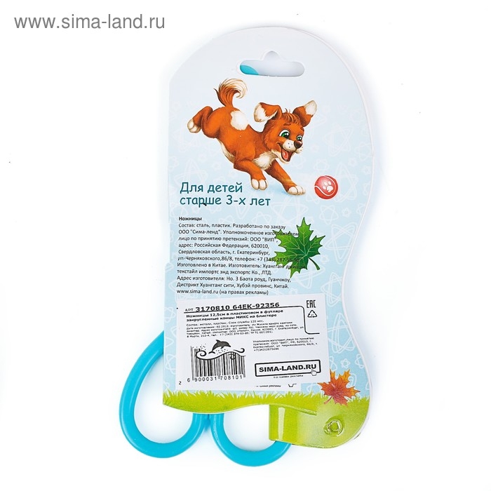 Ножницы детские 13,5 см, "Каляка-Маляка", безопасные, металлические лезвия, пластиковые ручки
