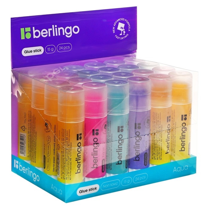 Клей-карандаш PVP 15 г Berlingo Aqua, цветной
