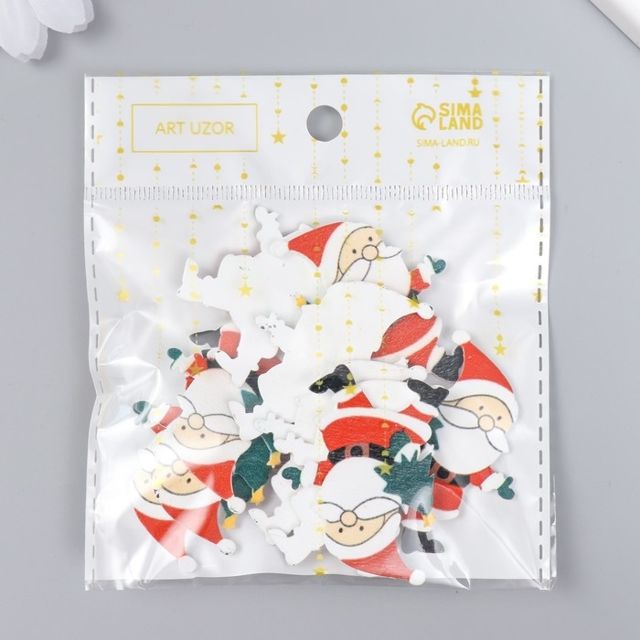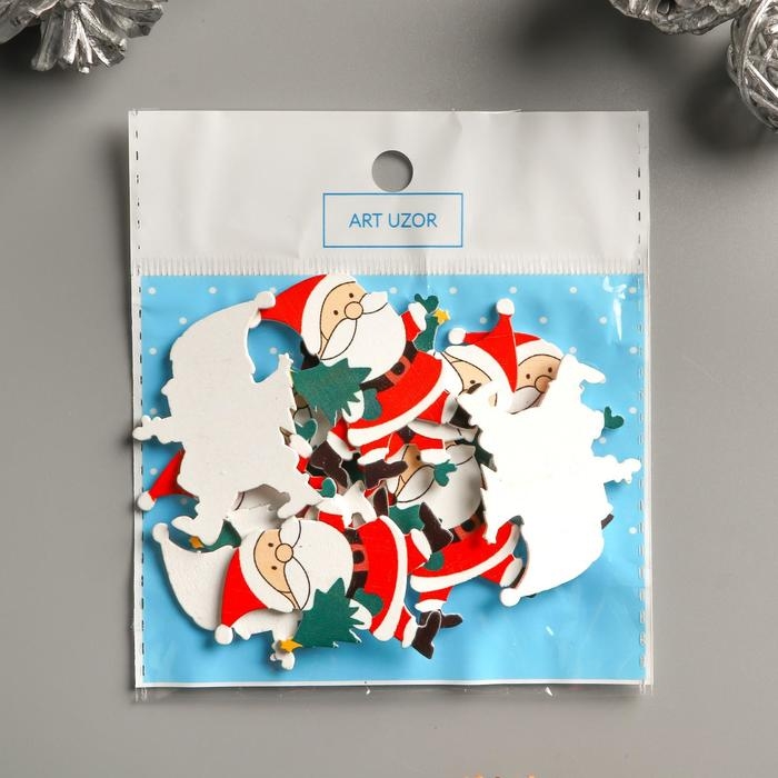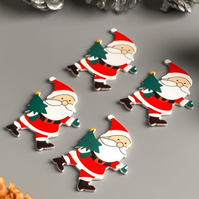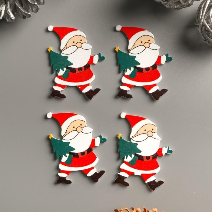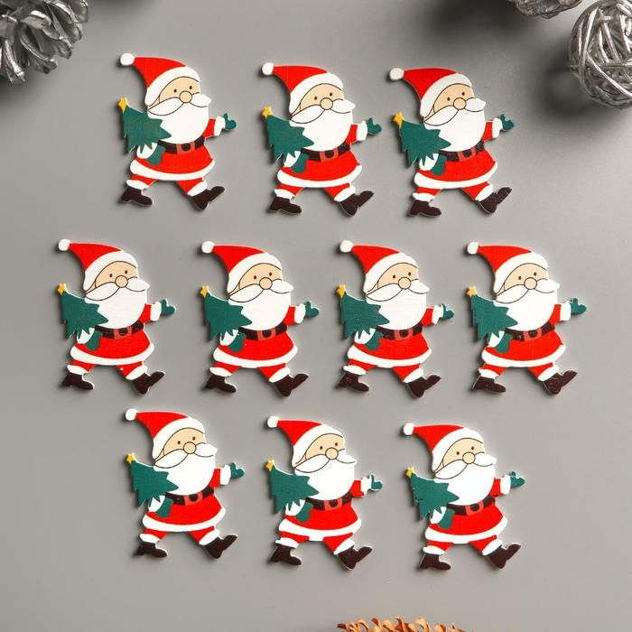 Декор для творчества дерево "Дедушка мороз с ёлкой" набор 10 шт 4,2х3,4 см