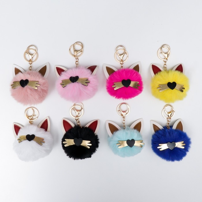 Пушистик на кольце "Котик с золотыми усиками" МИКС d=10 см