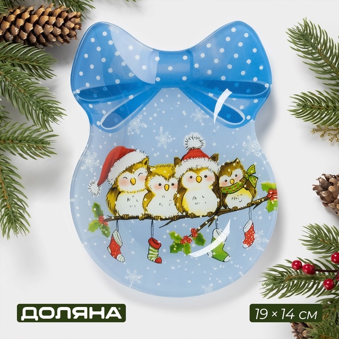 Блюдо сервировочное стеклянное Доляна «Бант. Совиное тепло», 19×14 см