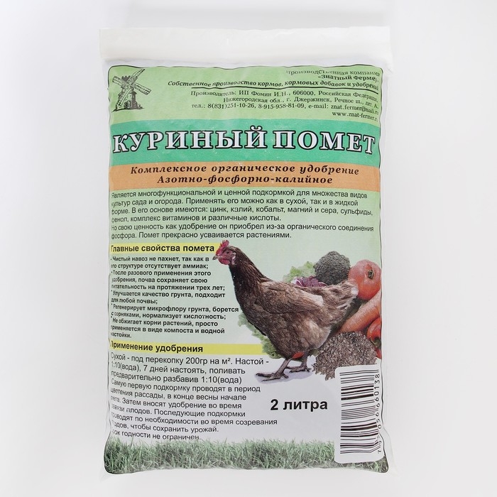 Удобрение органическое "Знатный фермер", сухое, Куриный помет, 2 лОрганическое гранулированное удобрение "Знатный фермер" представляет собой инновационный продукт, специально разработанный для садоводов и фермеров. Оно производится на основе сухого птичьего помета, что обеспечивает его высокую эффективность и уникальные свойства.Особенностью удобрения "Знатный фермер" является то, что большая часть биогенных элементов находится в органической форме, что позволяет им практически не вымываться из почвы. Это обеспечивает длительное действие удобрения и позволяет растениям получать необходимые питательные вещества на протяжении длительного времени.При внесении удобрения "Знатный фермер" не происходит резкого увеличения содержания в почве подвижных форм азота, фосфора, калия, что исключает повышение их токсичности. Это делает удобрение безопасным для растений и окружающей среды.Использование органического удобрения "Знатный фермер" позволяет улучшить качество почвы, повысить урожайность и улучшить вкусовые качества плодов и овощей. Благодаря своей натуральной природе, данное удобрение является отличным выбором для тех, кто ценит экологически чистые продукты и заботится о здоровье своей почвы.Таким образом, удобрение органическое "Знатный фермер" представляет собой надежное и эффективное средство для улучшения плодородия почвы и обеспечения растений необходимыми питательными веществами. Его использование позволит достичь высоких результатов в сельском хозяйстве и садоводстве, сохраняя при этом естественный баланс природы.
