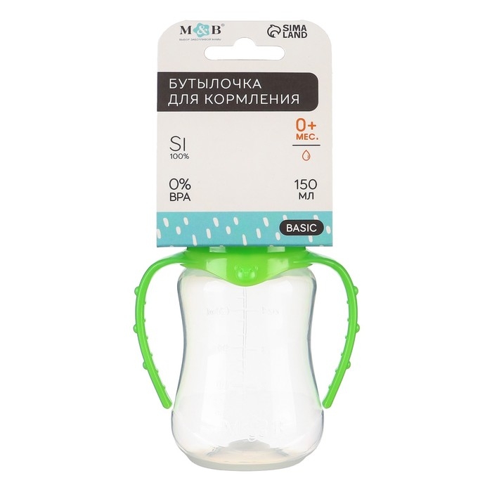 Бутылочка для кормления, классическое горло, приталенная, с ручками, 150 мл., от 0 мес., цвет зелёный