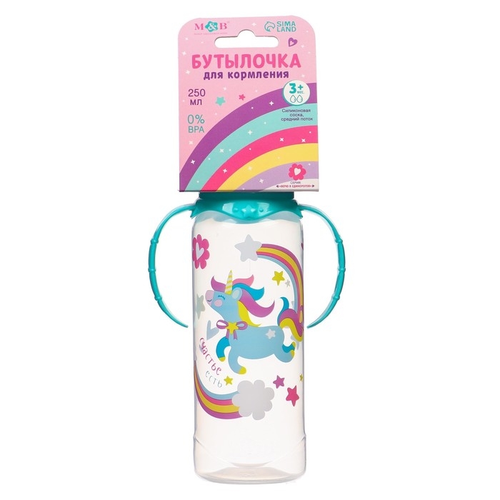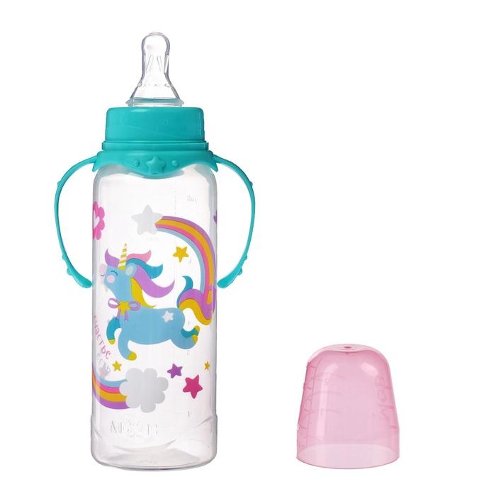 Бутылочка для кормления «Волшебная пони», классическое горло, с ручками, 250 мл., от 3 мес, цвет бирюзовый