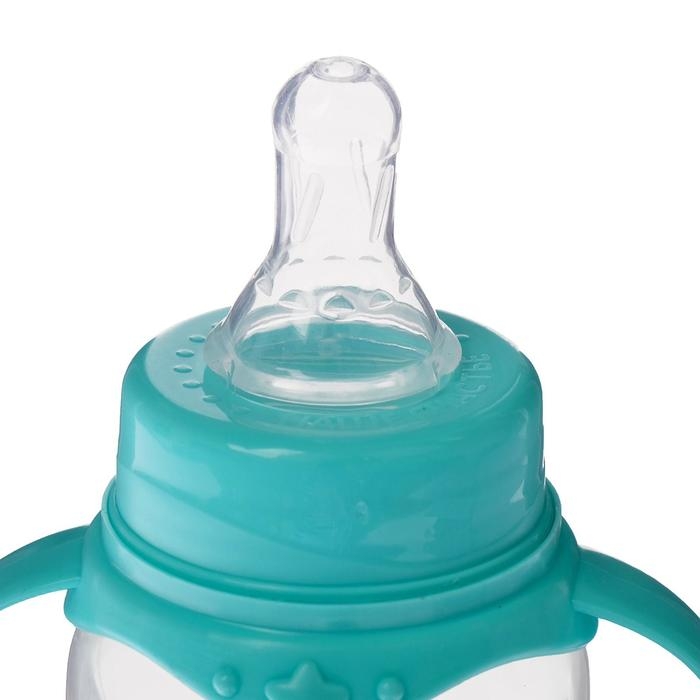 Бутылочка для кормления «Наше сокровище», классическое горло, приталенная, с ручками, 150 мл., от 0 мес., цвет бирюзовый