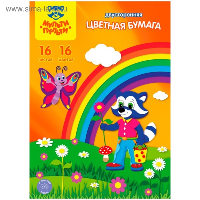 Бумага цветная двухсторонняя A4, 16 листов, 16 цветов Мульти-Пульти, в папке, плотность 65 г/м2