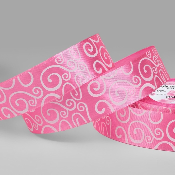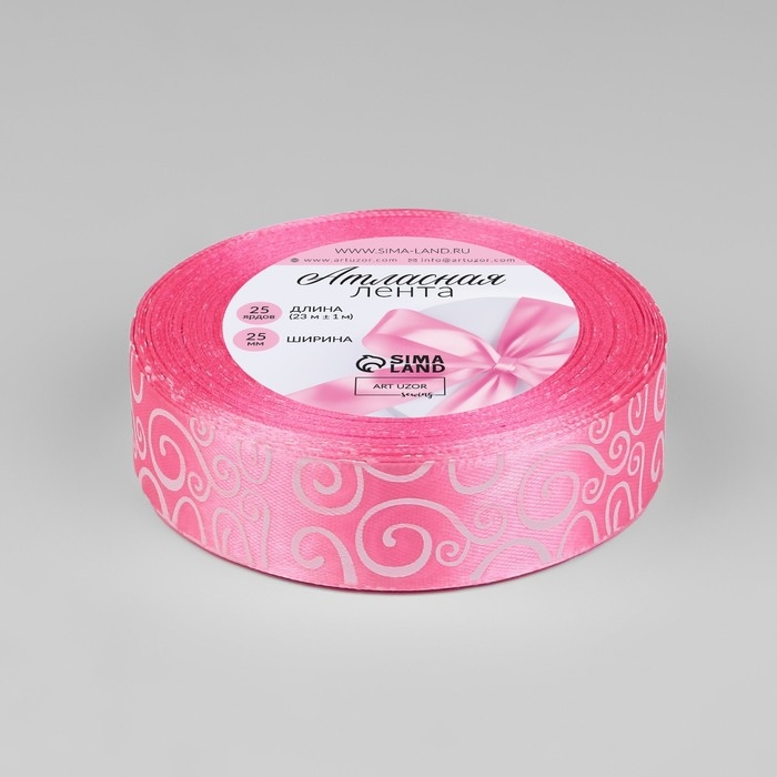 Лента атласная «Узор», 25 мм × 23 ± 1 м, цвет розовый №005