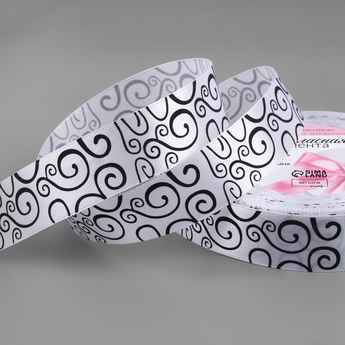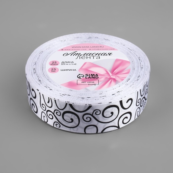Лента атласная «Узор», 25 мм × 23 ± 1 м, цвет чёрный/белый №001