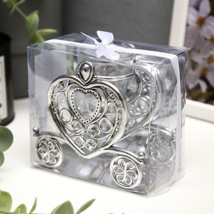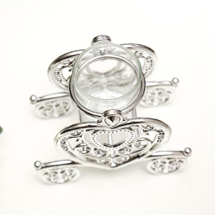 Подсвечник пластик, стекло "Карета" серебро 9,5х10х6 см