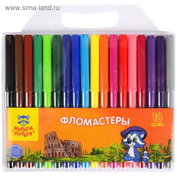 Фломастеры 18 цветов Мульти-Пульти "Енот в Италии", смываемые