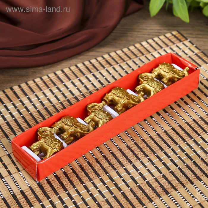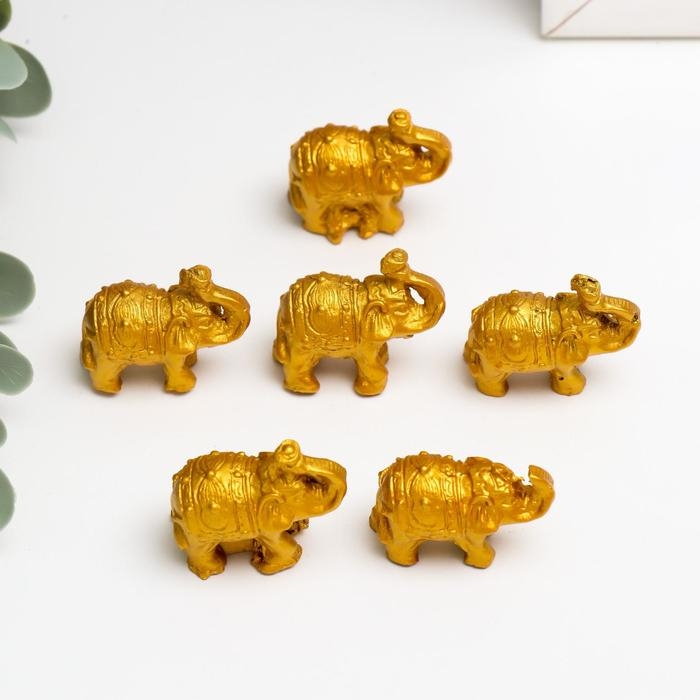 Нэцке полистоун "Золотые слоны" набор 6 шт 3х3,5х1,7 см