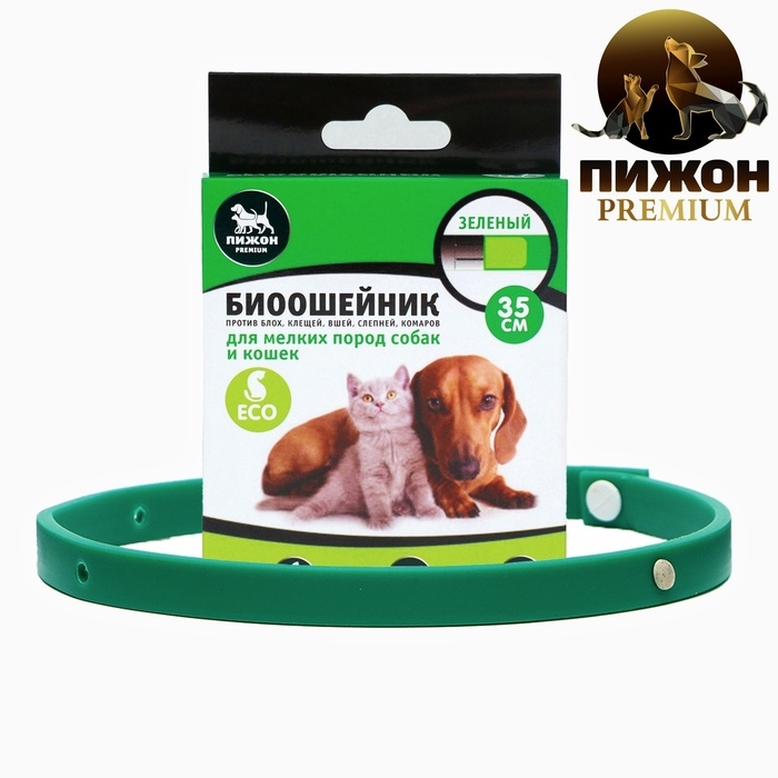 Биоошейник от паразитов "Пижон Premium" для кошек и собак, зелёный, 35 см