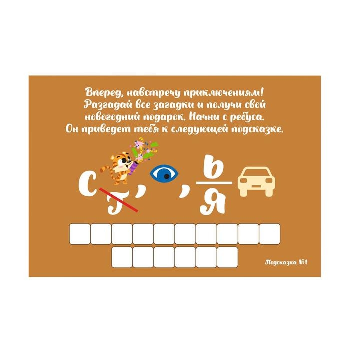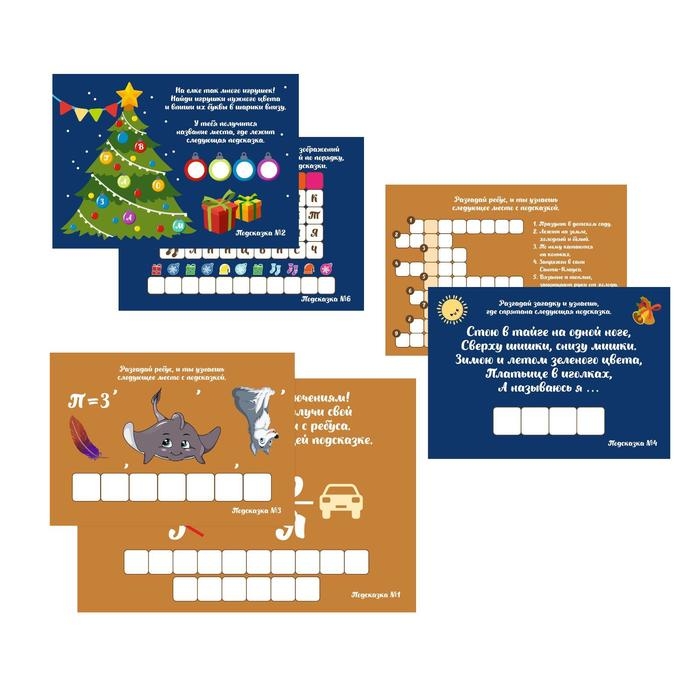 - 7 листочков-подсказок с загадками, ребусами и шифрами.
