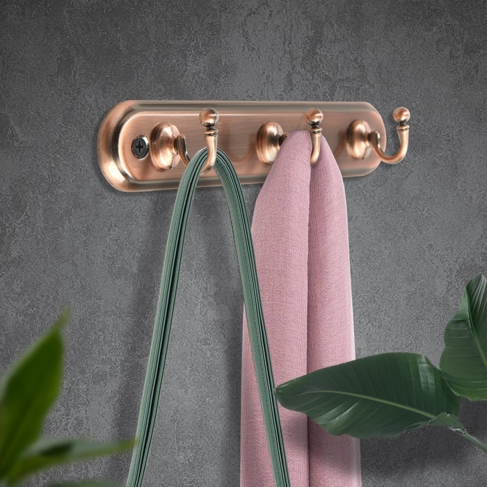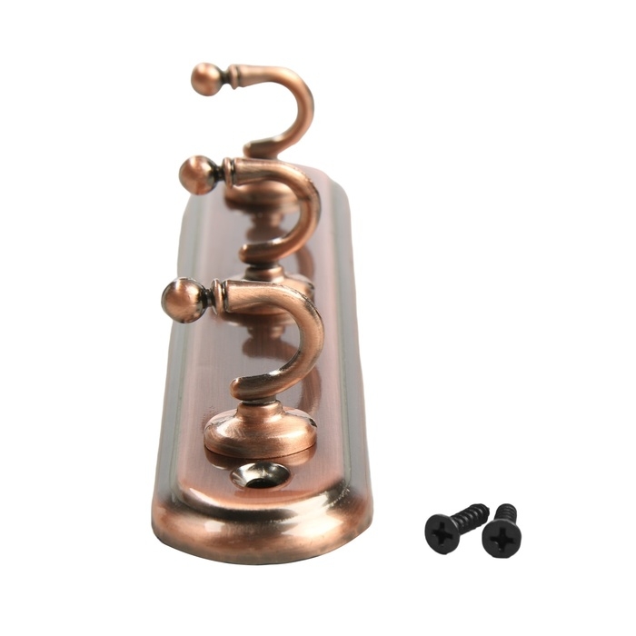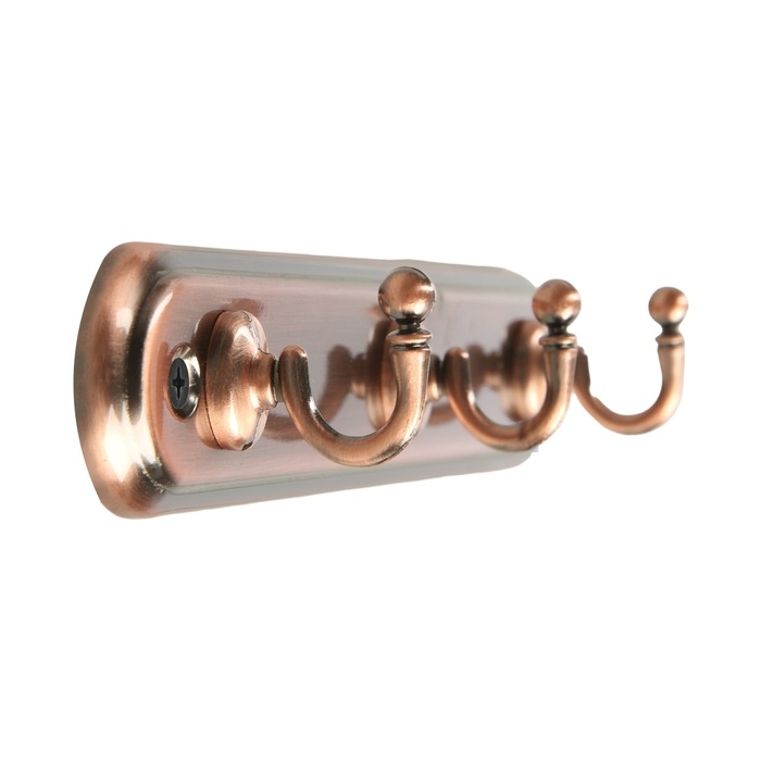 Вешалка ТУНДРА TVT002, металлическая, трёхрожковая, цвет медь
