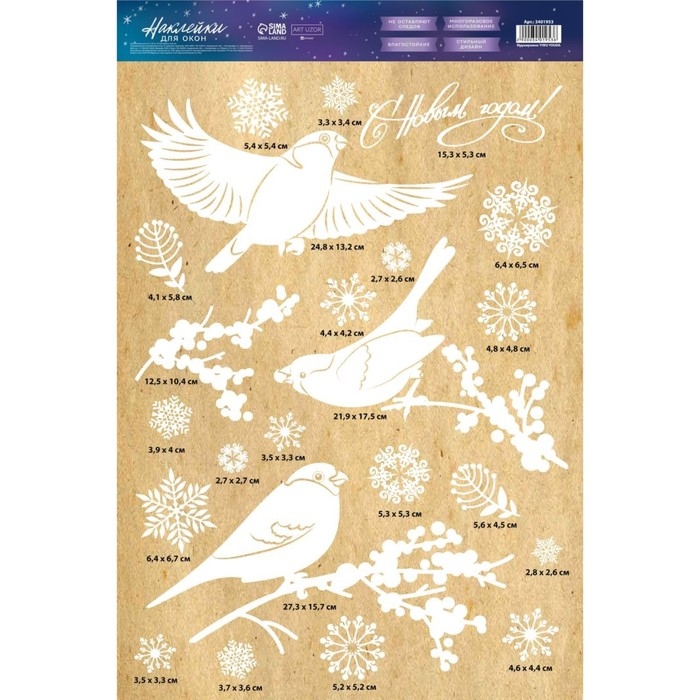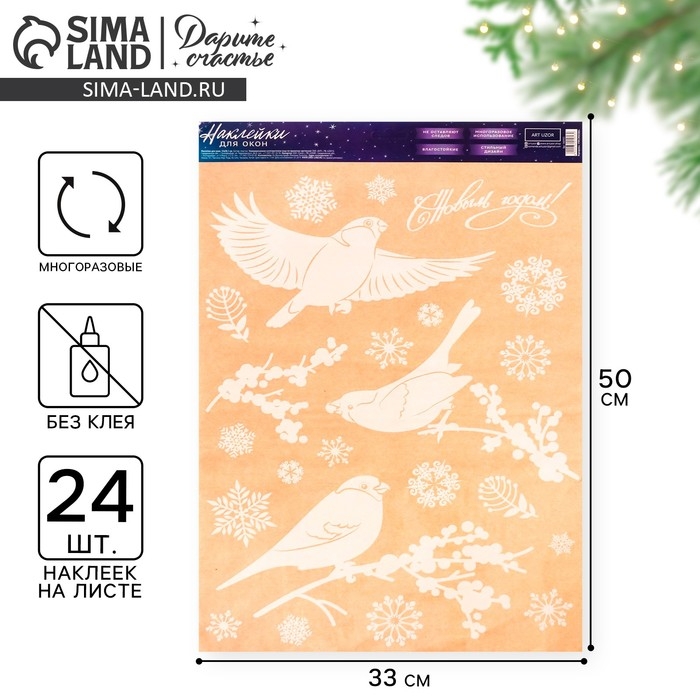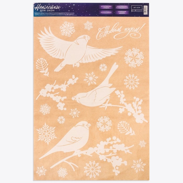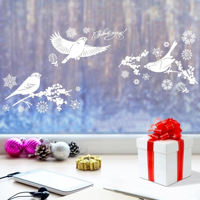 Наклейки новогодние на окна «Зимние птички» , многоразовые, 33 х 50 см, Новый год