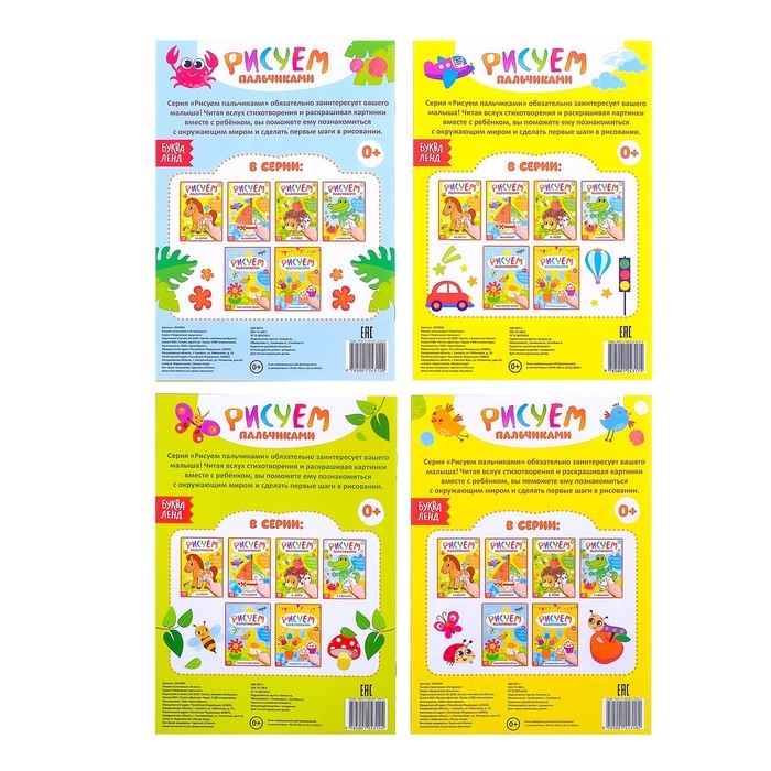 Раскраски «Рисуем пальчиками», набор 4 шт., 16 стр.
