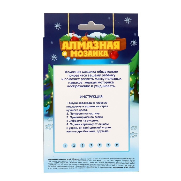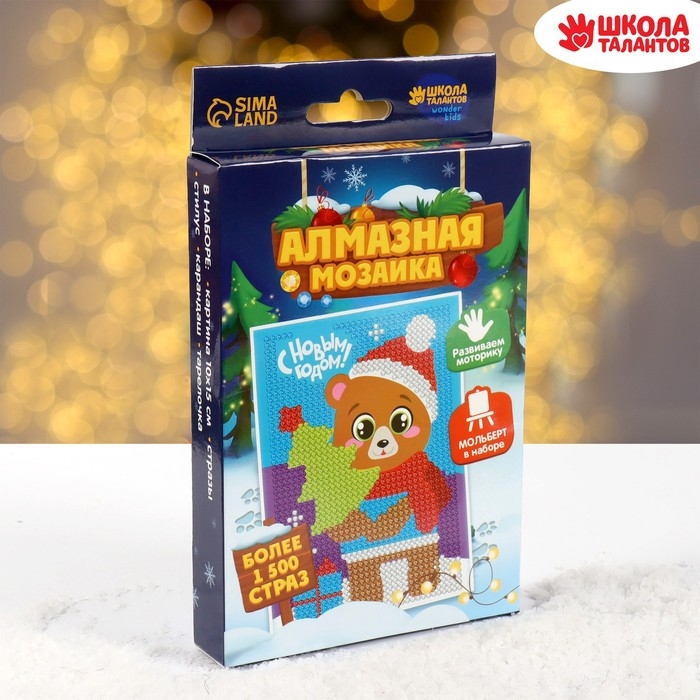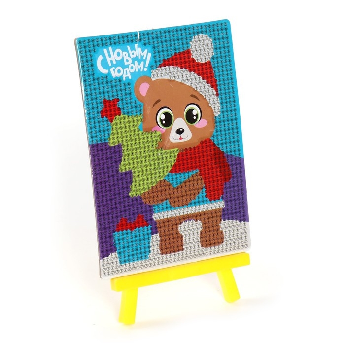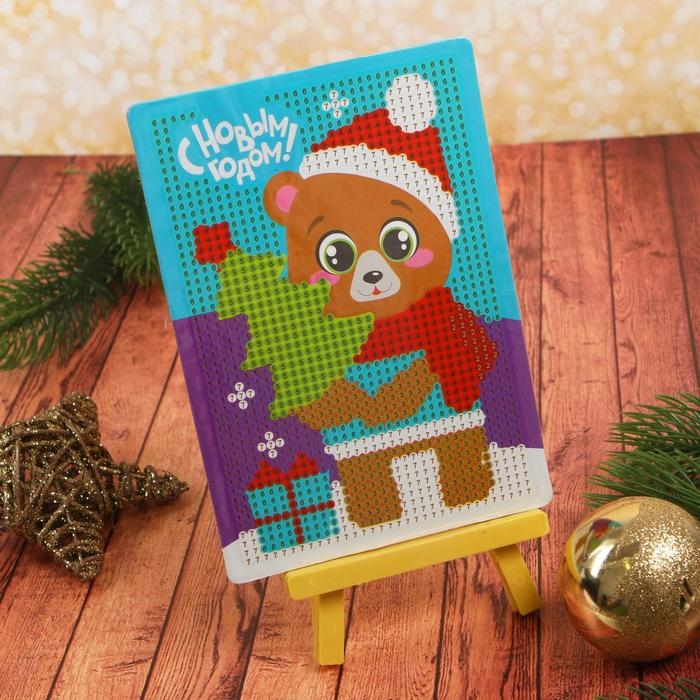 Алмазная мозаика на новый год с частичным заполнением для детей «Медведь», 10 х 15 см, новогодний набор для творчества