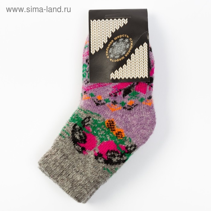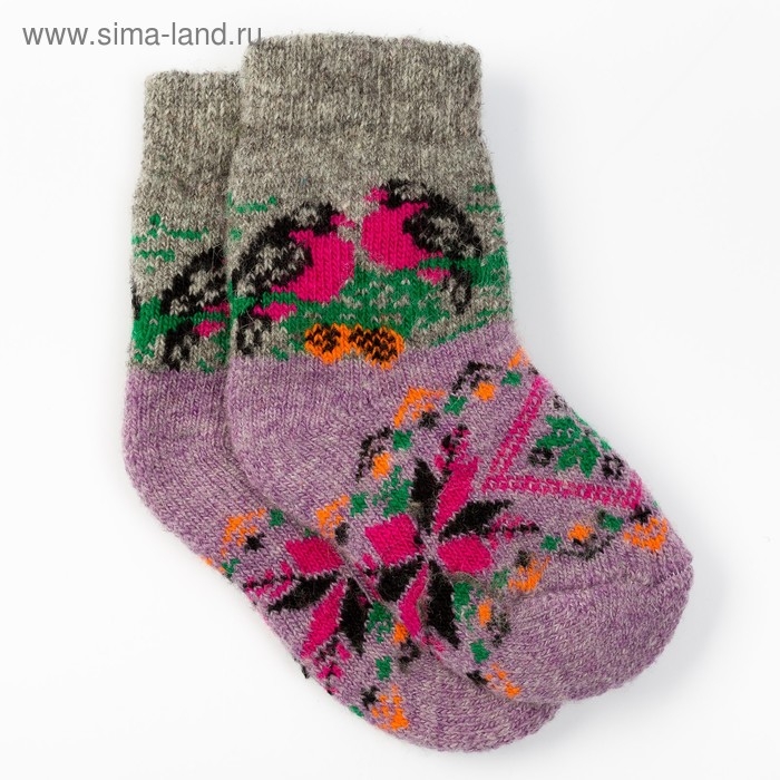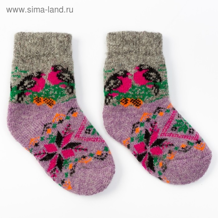 Носки детские шерстяные «Снегири», цвет сиреневый, размер 18