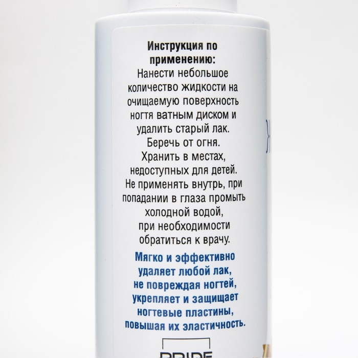 Способ применения: нанесите на ватный диск небольшое количество средства. Стирайте лак по направлению роста ногтей от основы к кончику.