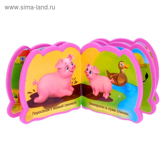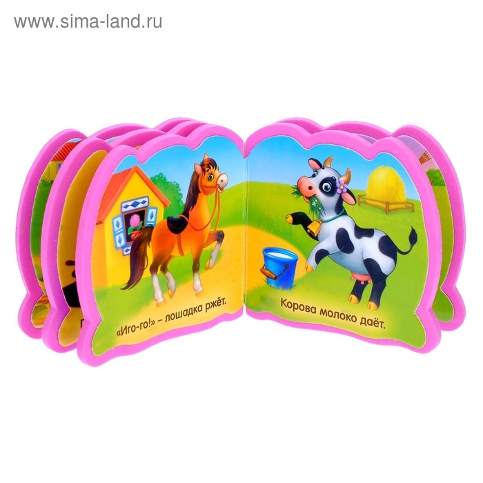 Мягкая книга сделана из приятного на ощупь пористого материала ЭВА. На каждой странице приклеены яркие иллюстрации с милыми персонажами, которые непременно понравятся малышу. С этой книгой малыш познакомится с обитателями фермы и леса.
