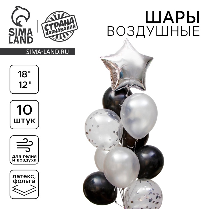 Набор воздушных шаров «Стильный» с конфетти, латекс, фольга, набор 10 шт.