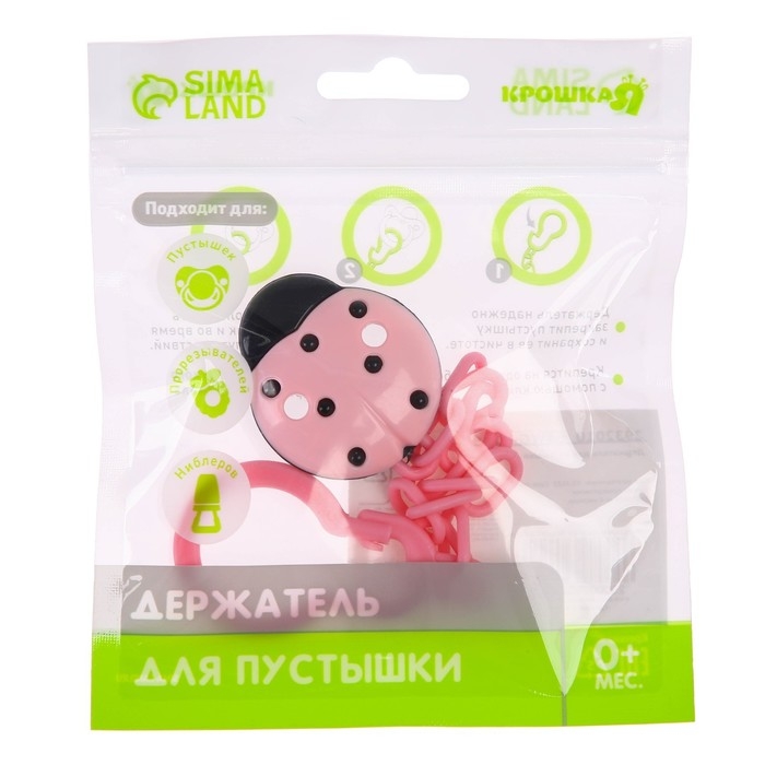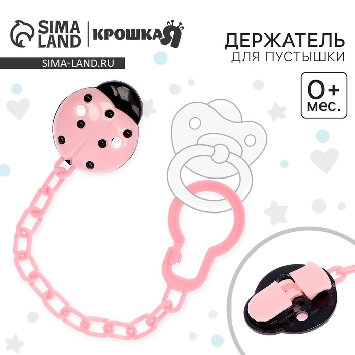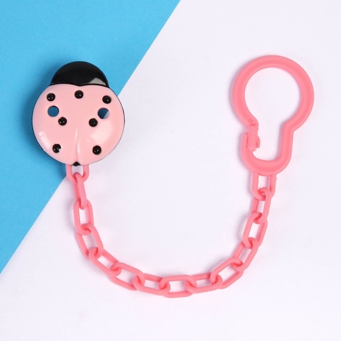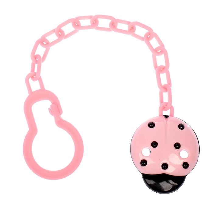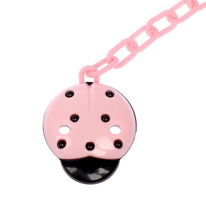 Держатель для соски - пустышки «Божья коровка», на цепочке, цвет розовый