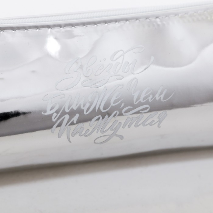 Пенал мягкий 1 отделение, 80 х 190 х 30 мм, кожзам зеркальный "Звёзды ближе, чем кажутся" серебристый