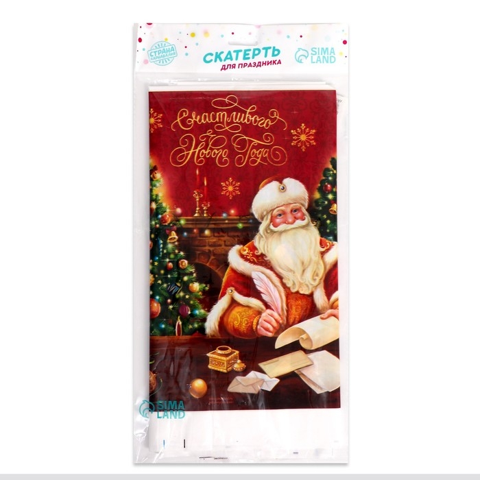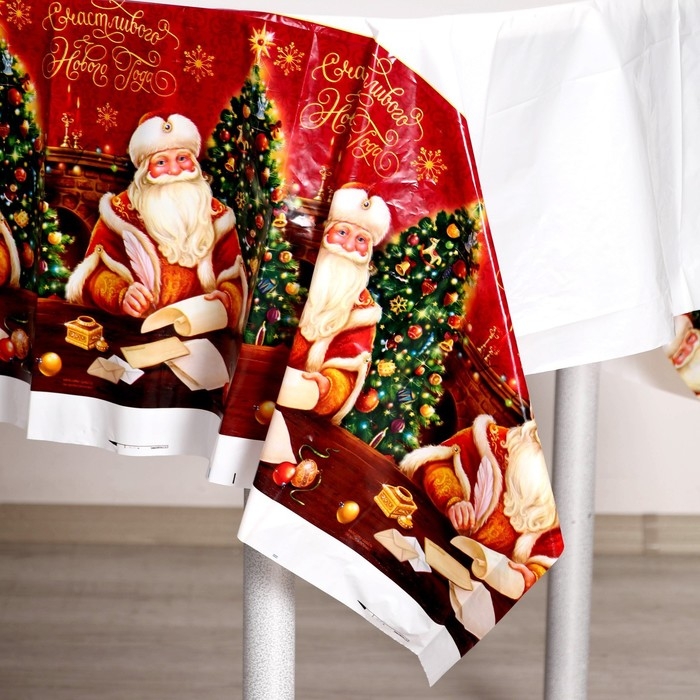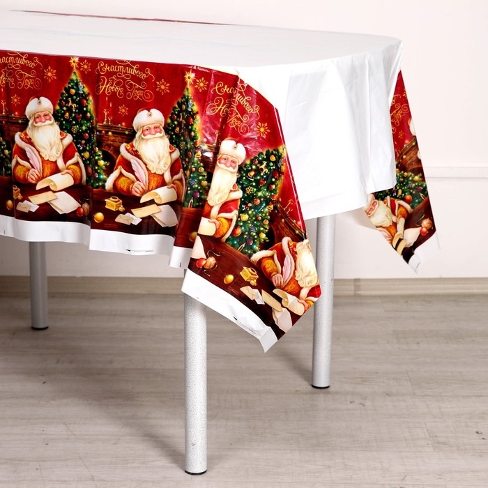 Новогодняя скатерть одноразовая «Счастливого Нового Года», Дед Мороз, 182х137 см