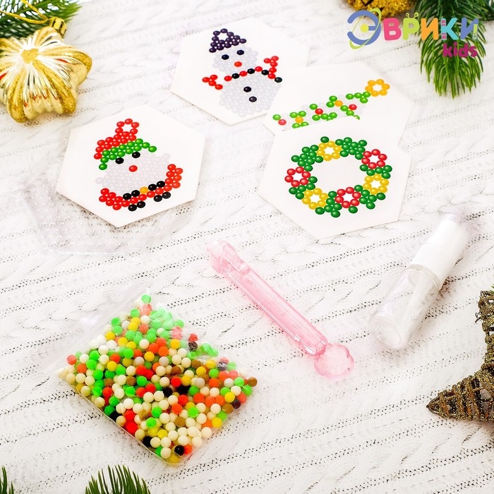 Аквамозаика «Новогодние приключения» скрасит дни в ожидании Нового года и поможет весело и с пользой провести время. Ребёнок соберёт 4 объёмных фигурки из шариков-пикселей, потренирует мелкую моторику и внимание.