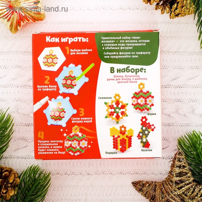 Аквамозаика «Украшения на ёлку», 4 фигурки