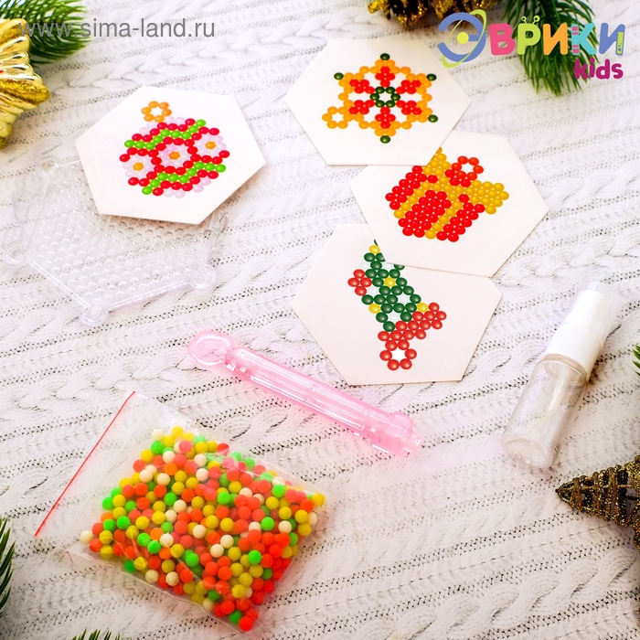 Аквамозаика «Украшения на ёлку» скрасит дни в ожидании Нового года и поможет весело и с пользой провести время. Ребёнок соберёт 4 объёмных фигурки из шариков-пикселей, потренирует мелкую моторику и внимание.