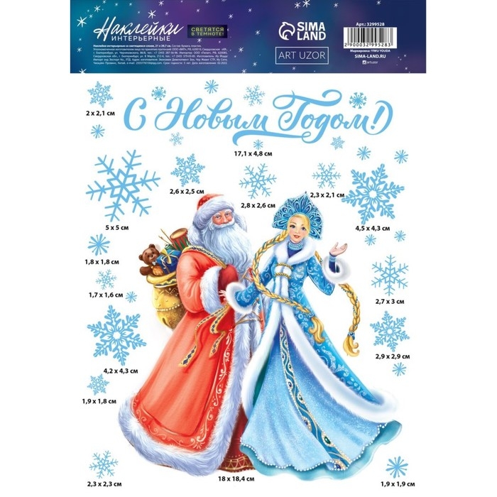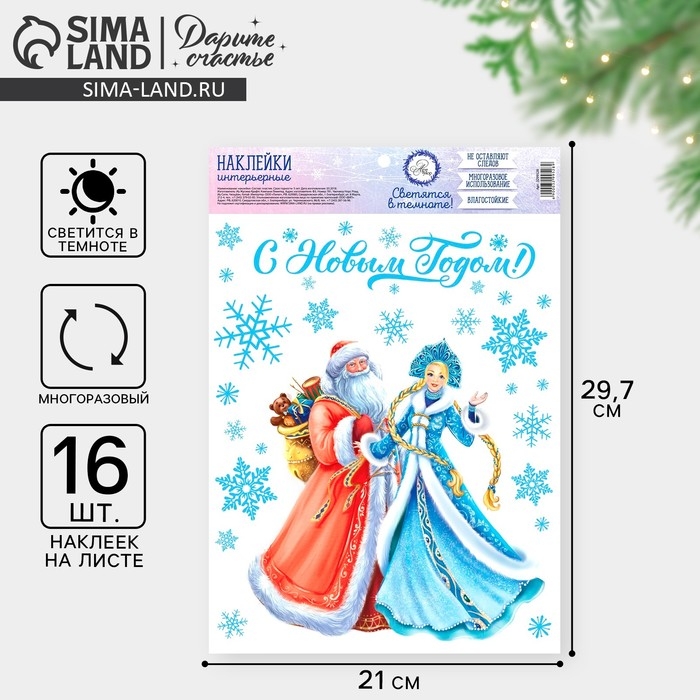 Наклейки новогодние, интерьерные со светящимся слоем «С Новым годом!», 21 х 29,7 см, Новый год