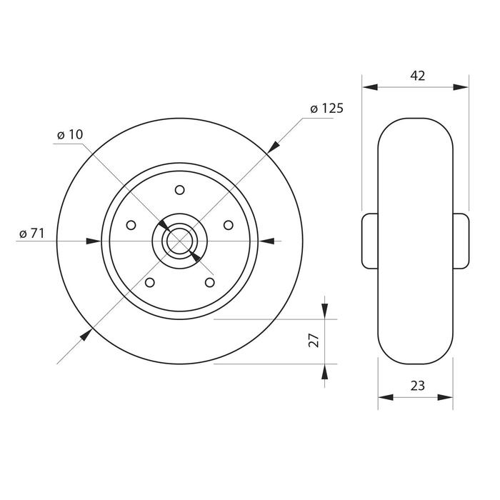 Колесо для транспортных тележек, d=125 мм, на площадке