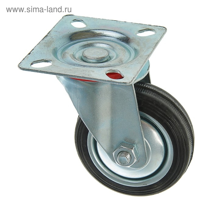 Колесо мебельное, d=50 мм, на площадке, с фиксатором, красное