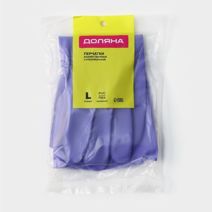 Перчатки хозяйственные Доляна, суперпрочные, размер L, ПВХ, цвет фиолетовый