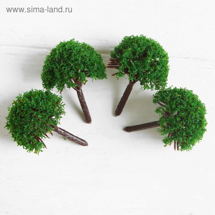 Миниатюра кукольная, набор 4 шт «Дерево» размер 1 шт: 2×2×3,5 см, цвет зелёный