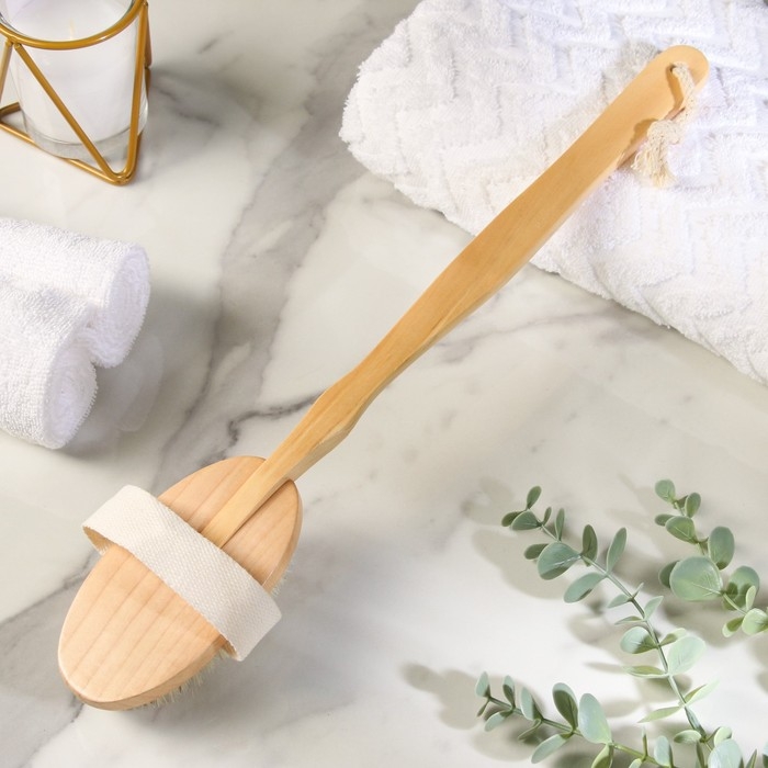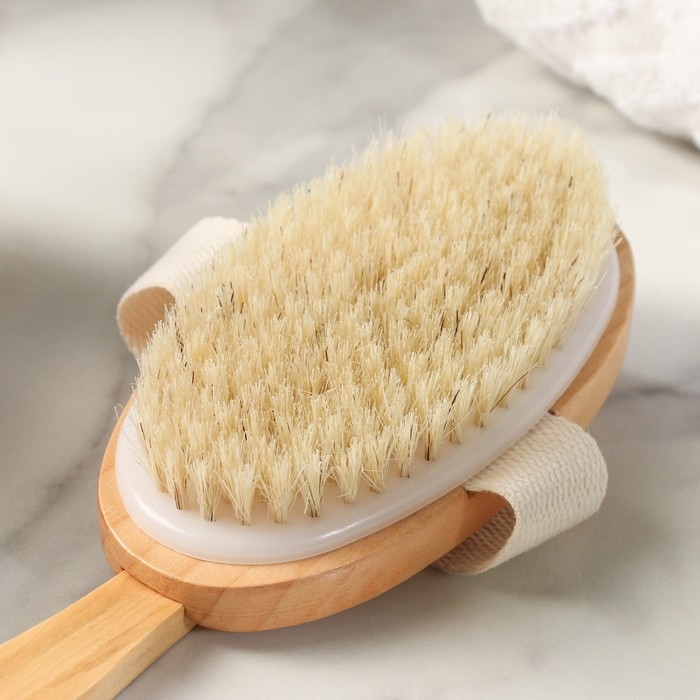Щётка массажная для тела Доляна, с ручкой, натуральная щетина
