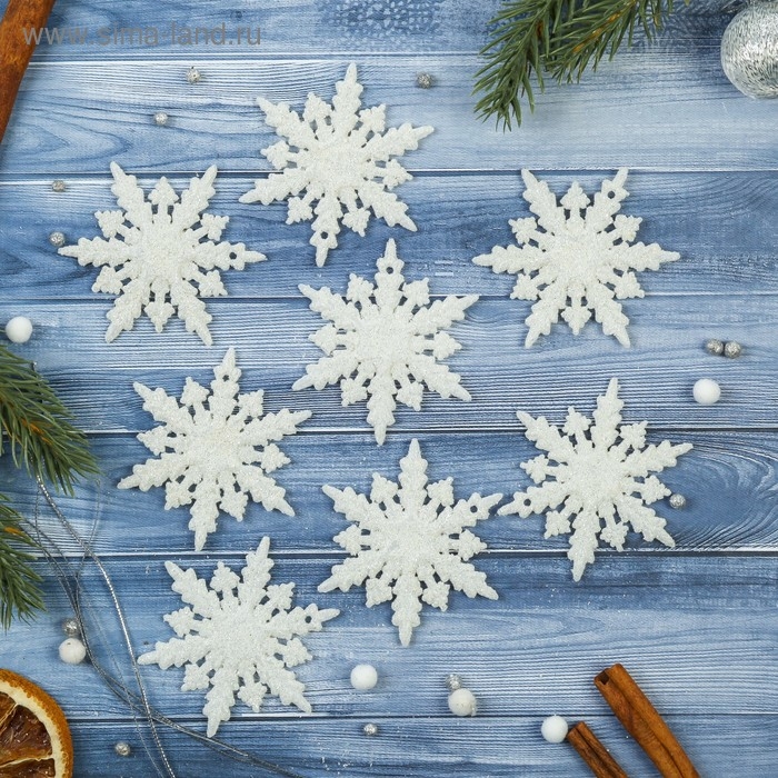 Украшение ёлочное "Снежинка полярная" (набор 6 шт) d-6 см, белый