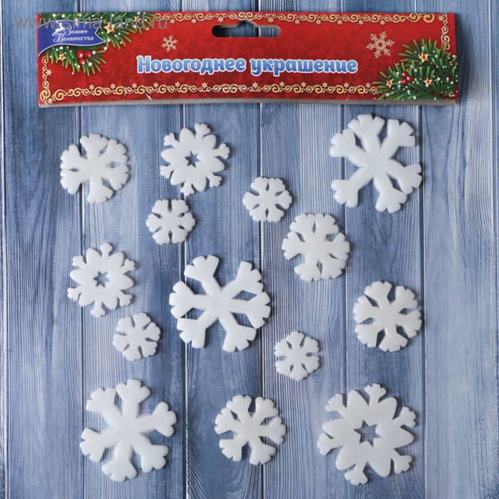 Наклейка на стекло "Белые снежинки" (набор 14 шт) 18,5х18,5 см