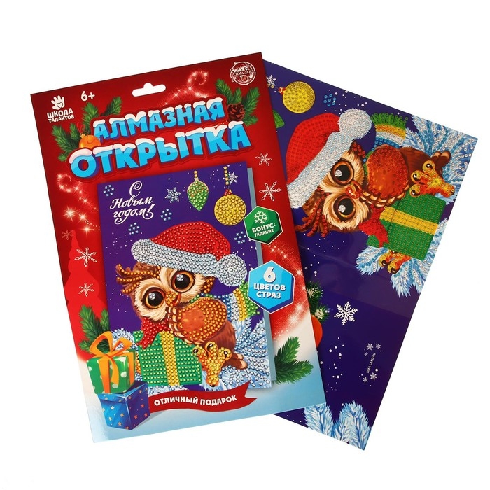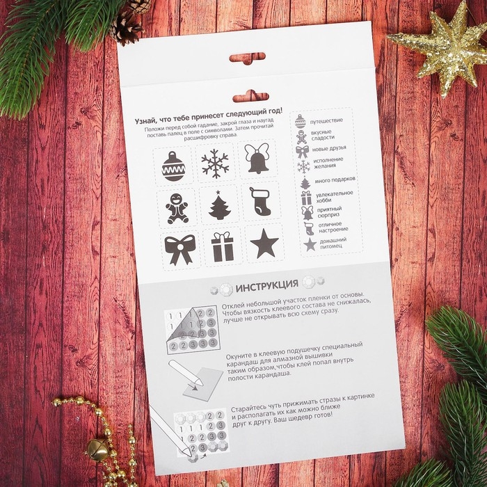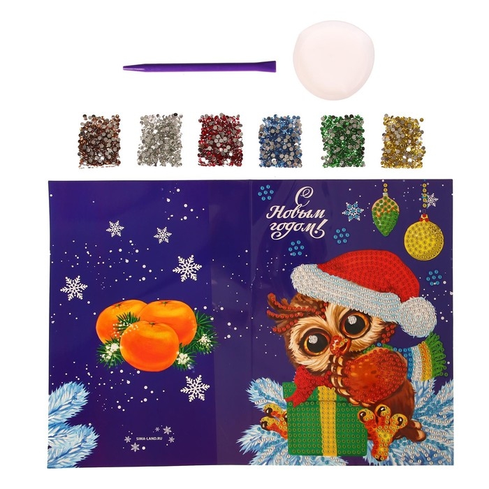 Алмазная мозаика на новый год с частичным заполнением для детей на открытке «Новый год!», 21 х 15 см, новогодний набор для творчества