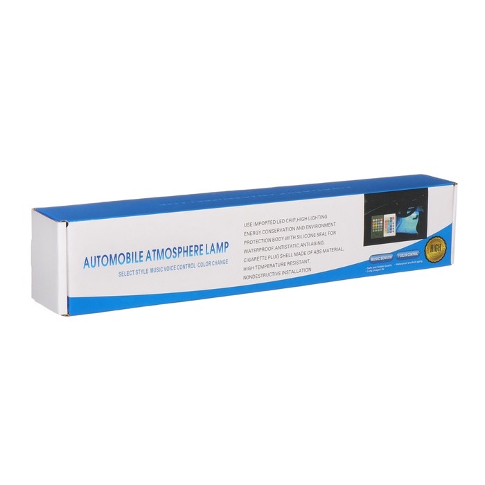 Подсветка крепится в любое место с помощью двустороннего скотча и работает от стандартного гнезда прикуривателя 12 Вт.