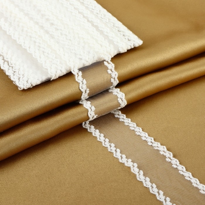 Кружево на сетке, 45 мм × 14 ± 1 м, цвет белый
