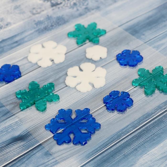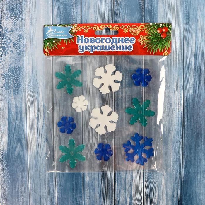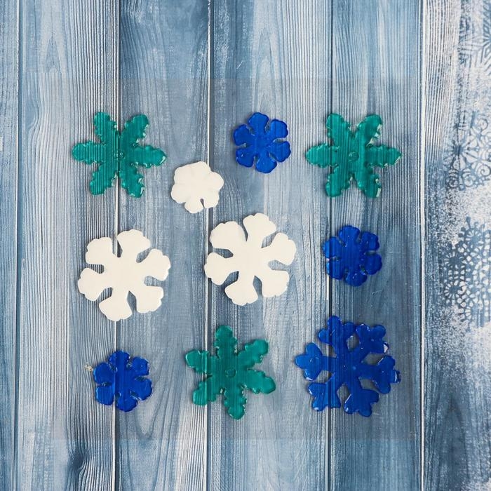 Наклейка на стекло "Снежиночки" (набор 10 шт) 12,5х12,5 см, белый зелёный синий
