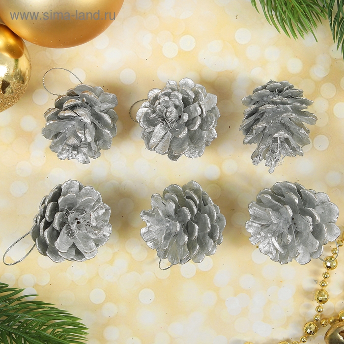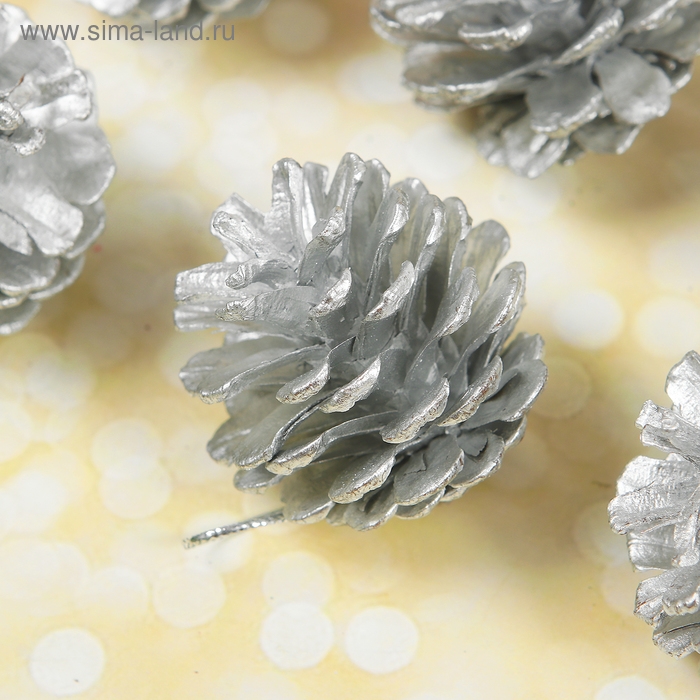 Набор природного декора "Серебряные шишки", набор 6 шт.